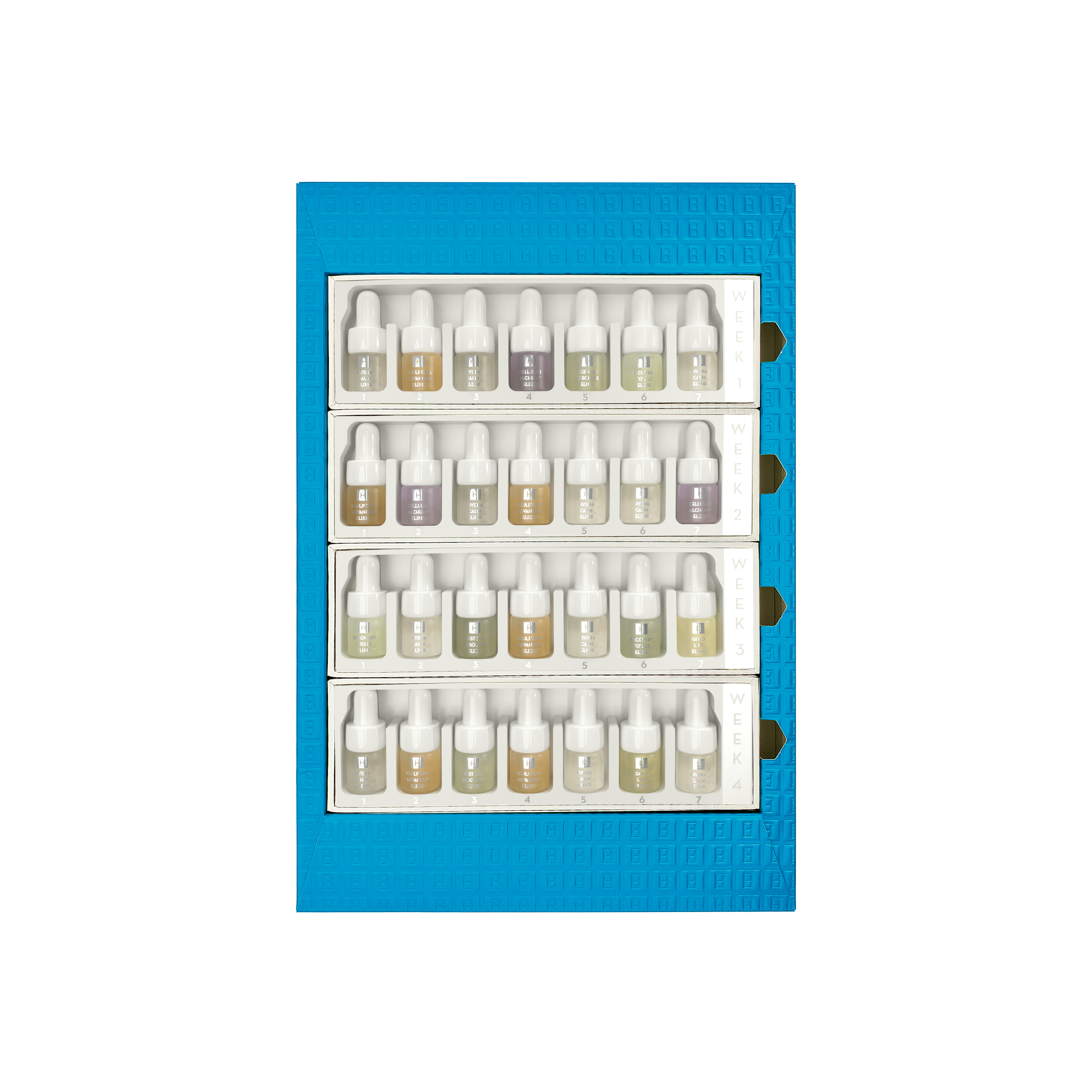 A four-week dermatological plan which follows a precise daily sequence and dosage of actives and potent plant and marine extracts to attain ultimate skin wellness.
