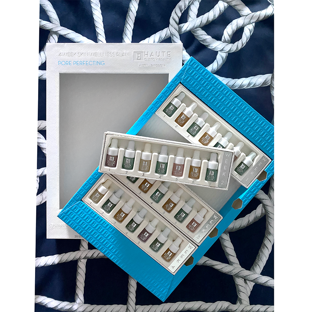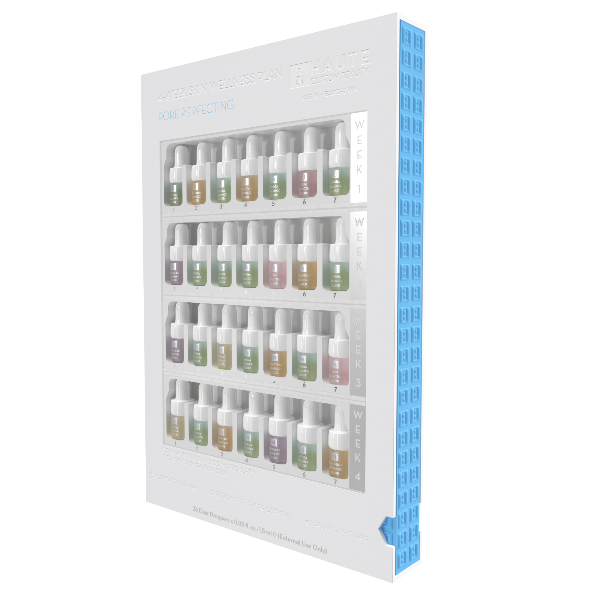fbq('track', 'ViewContent'); fbq('track', 'Search'); fbq('track', 'AddToCart'); fbq('track', 'AddToWishlist'); fbq('track', 'InitiateCheckout'); fbq('track', 'AddPaymentInfo'); fbq('track', 'Purchase', {value: '0.00', currency: 'GBP'}); fbq('track', 'Lead'); fbq('track', 'CompleteRegistration'); PORE PERFECTING 4-WEEK SKIN WELLNESS PLAN - Haute Custom Beauty US